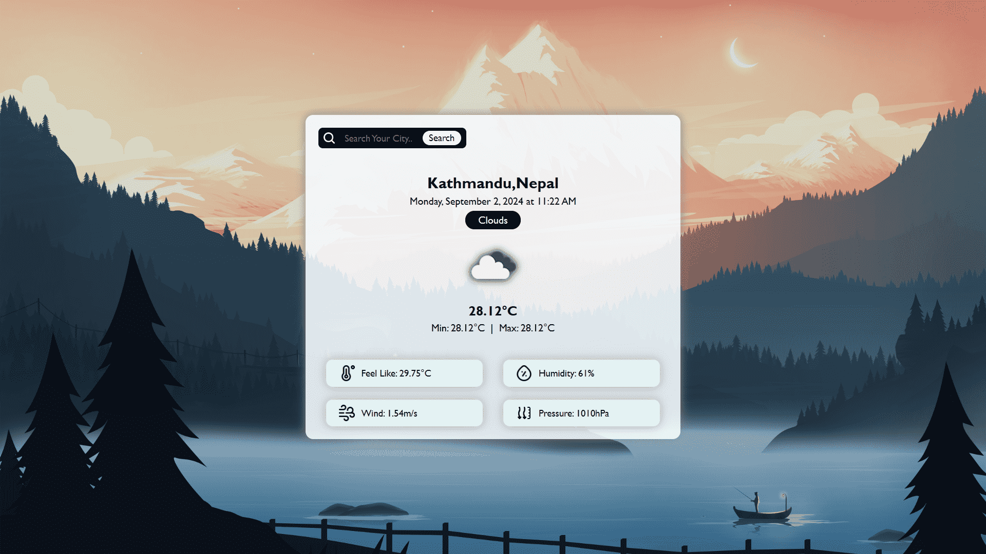 I built a weather app using HTML, CSS, and JavaScript, integrating a weather API to fetch real-time data. The app displays current weather conditions, forecasts, and other relevant information for any searched location. It features a clean, responsive design, making it a functional and attractive addition to my portfolio website.