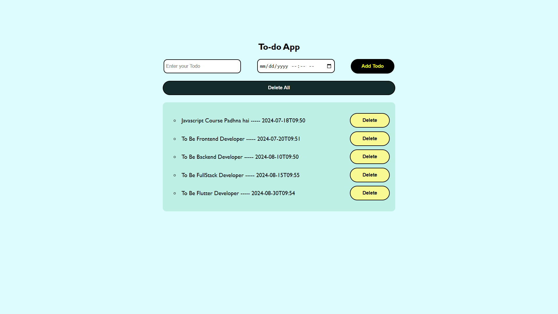 I developed a dynamic To-Do App using HTML, CSS, and JavaScript. This app allows users to add & delete tasks as complete, featuring a responsive design for seamless use across devices. It demonstrates my skills in front-end development and interactive user interfaces.